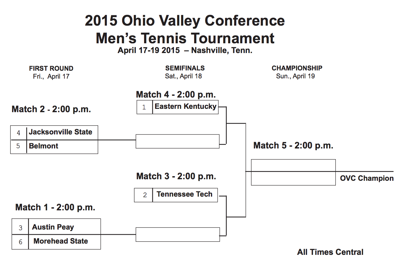Ohio Valley (Nashville, TN) April 17-19: Jacksonville State is defending champion. Participants are the top 6 out of these 10: Austin Peay, Eastern Kentucky, Tennessee Tech, Jacksonville State, Belmont, SIUE, Morehead St, Eastern Illinois, Murray State, Tennessee State.