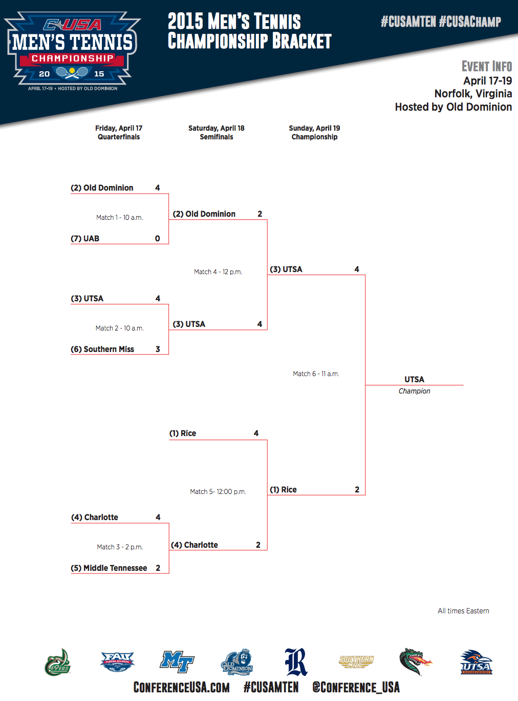 #1 Rice vs. #3 UTSA – 11am est – Live Scoring